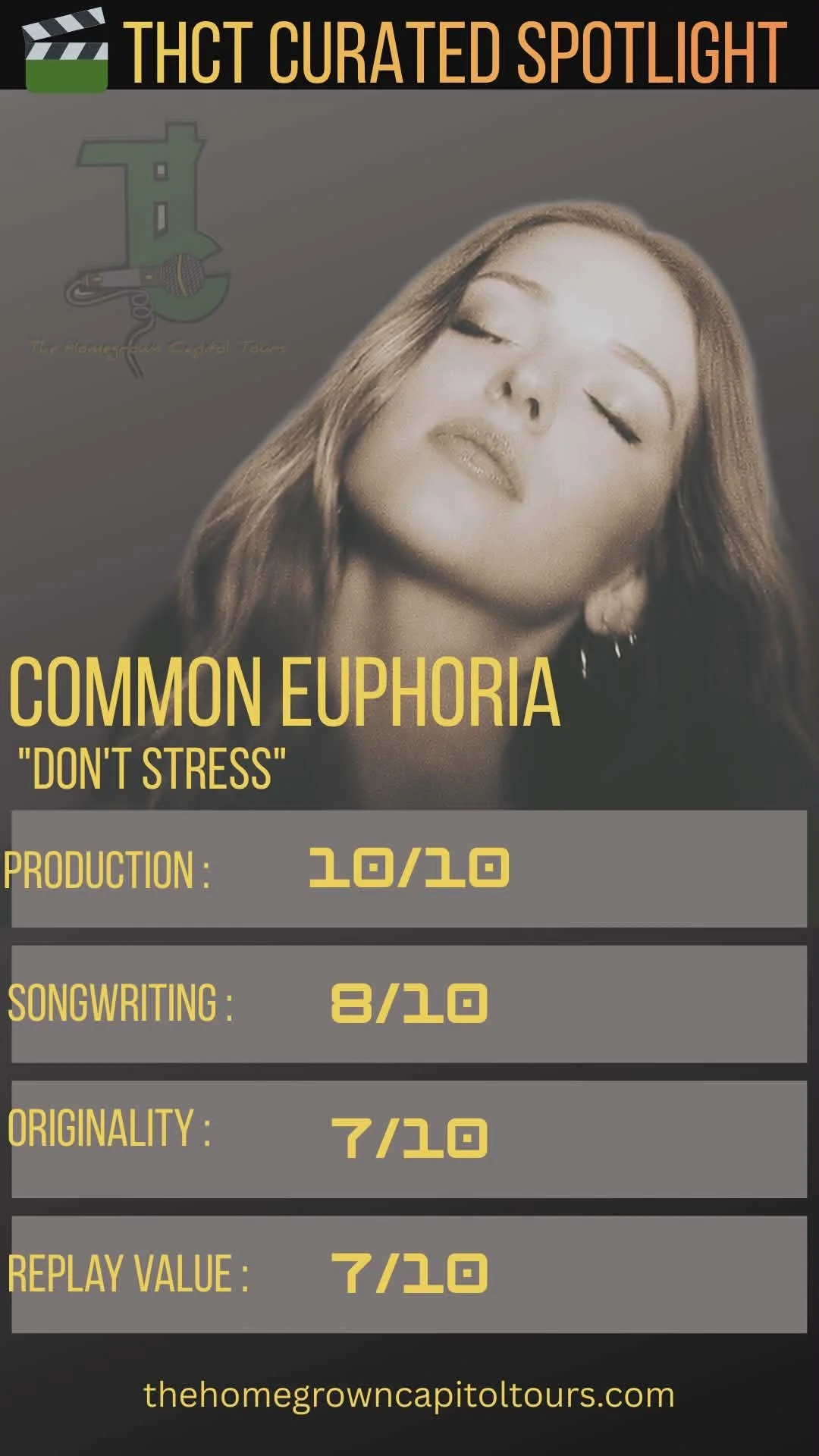 Replay value lands in a solid place as well, as the relaxing mood and cohesive production make the track enjoyable to return to, especially for listeners who appreciate mellow and reflective indie-pop. Overall, “Don’t Stress” delivers a polished listening experience that highlights Common Euphoria’s ability to craft emotionally driven music.
